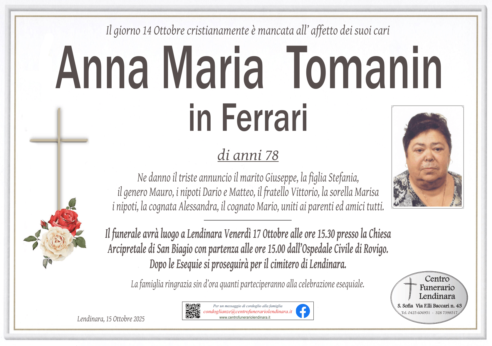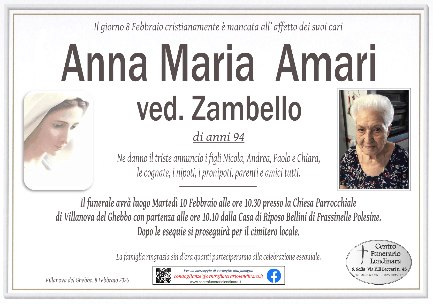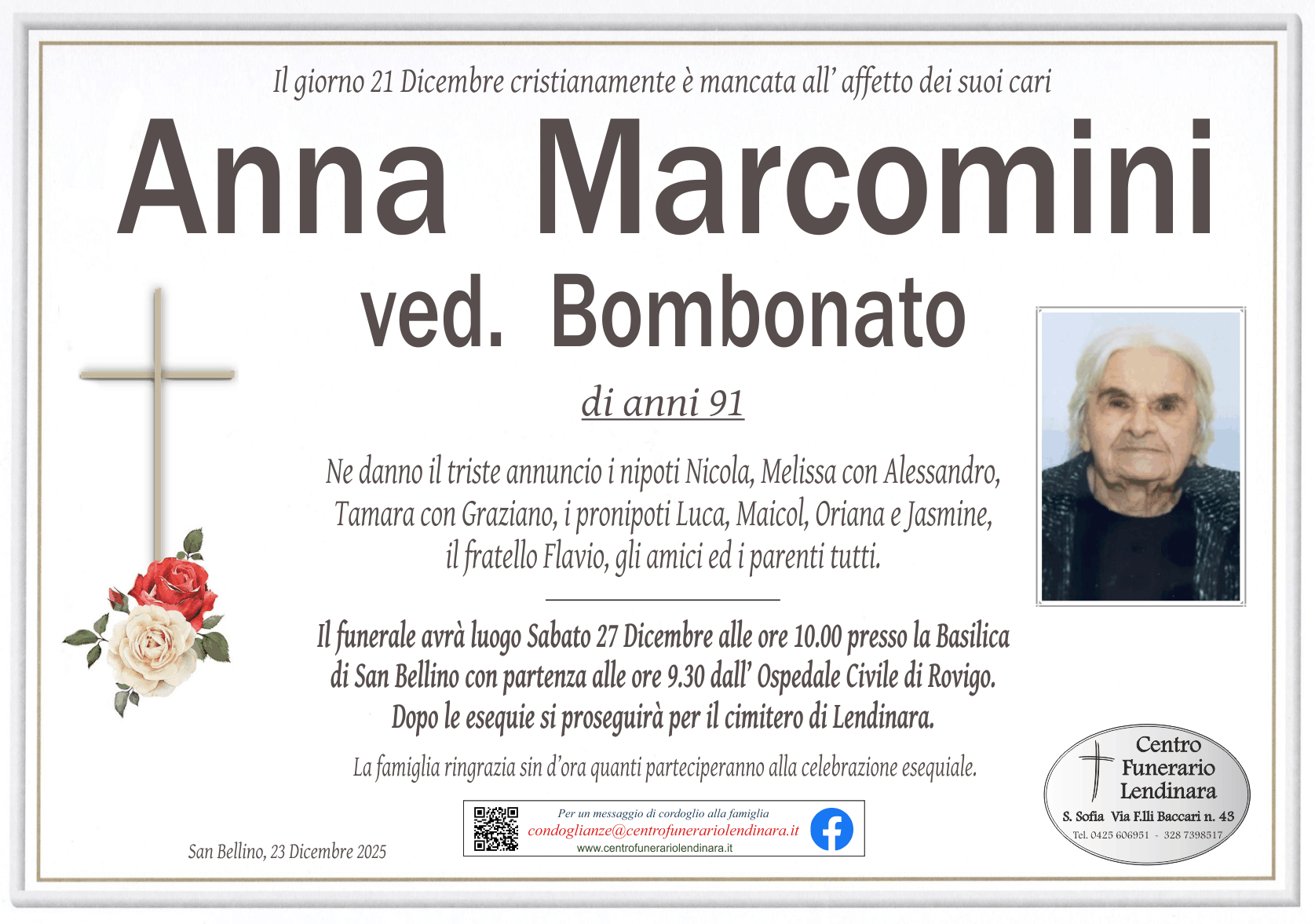 Necrologie - Onoranze Funebri Centro Funerario Lendinara
